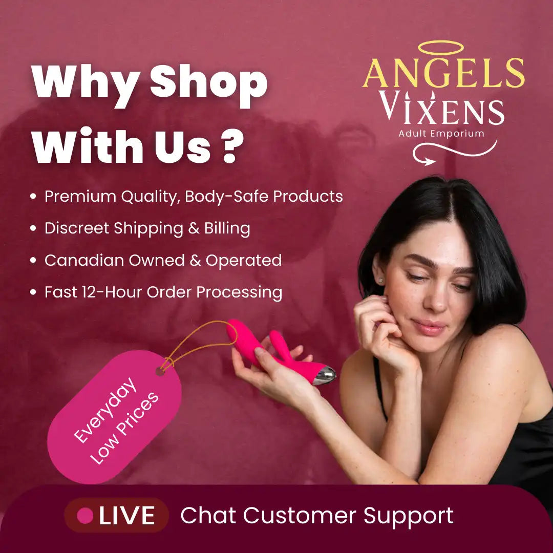 Welcome to Angels or Vixens Adult Emporium, your trusted destination for high-quality adult toys, lingerie, and intimacy products in Canada. Proudly Canadian owned and operated, we bring you one of the most extensive collections of adult novelties, carefully sourced from reputable global brands and designed to enhance pleasure, passion, and connection.